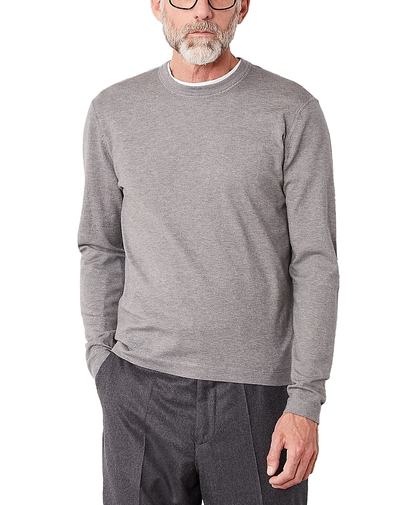 Officine Generale Long Sleeve Knitted Tee.Color:Mid Heather Gray.Size:X Small.Material:32% wool/28% polyester/20% viscose/20% polyamide.Tees.