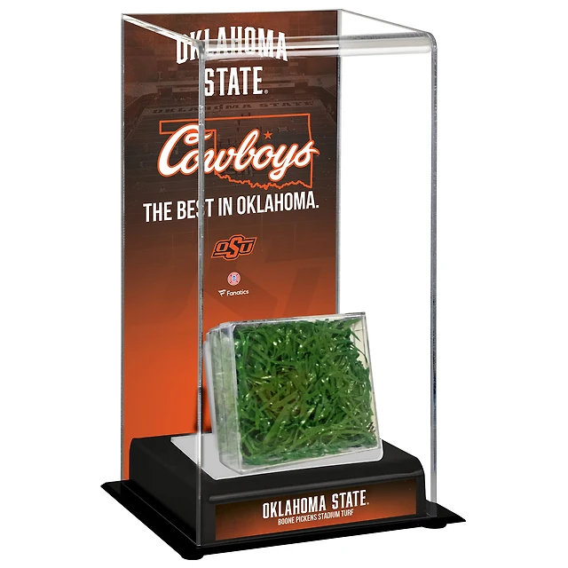 Oklahoma State Cowboys Tall Display Case with Game-Used Turf from Boone Pickens Stadium