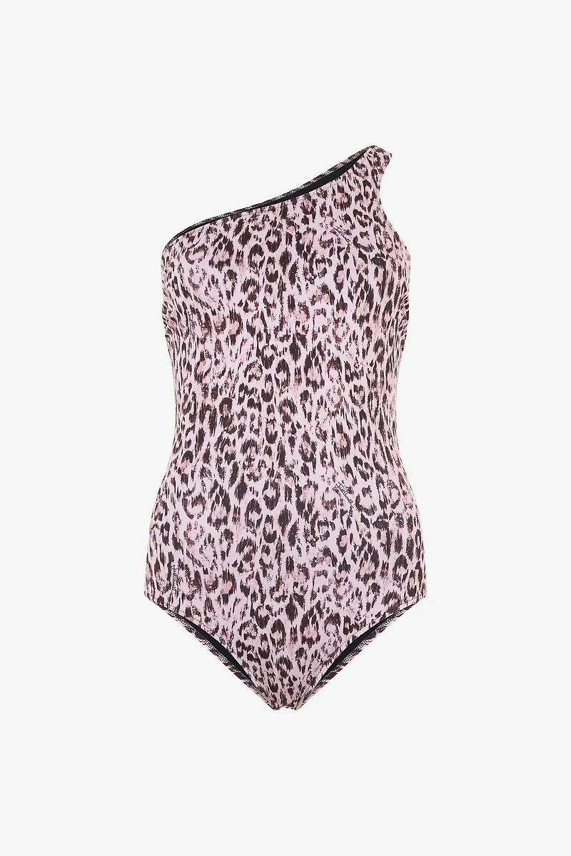 A roaring Jaguar Skin print imbues this one-shoulder one-piece swimsuit with feline elegance and it is made even more seductive by the asymmetrical cut-out on the back. The piece is finished with a gold-tone metal appliqué with the Just Cavalli lettering on the back, another unmistakable tribute to the brand's DNA.