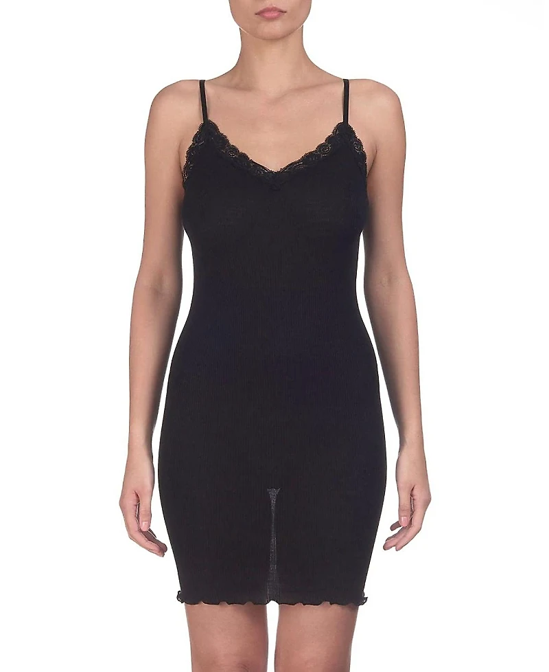 About The Brand:Indulge in Italian sophistication with this wool and silk chemise nightgown, crafted in Italy from a luxurious blend of extra fine Merino wool and pure silk. The rib-knit texture creates a lightweight, breathable feel that naturally regulates body temperature for year-round comfort. Designed with a feminine V-neckline trimmed in lace, this lounge dress captures timeless elegance. The neckline is adorned with elegant French Leavers lace, certified and numbered as true "Dentelle de Calais." Seamlessly constructed with adjustable straps for a perfect fit, it falls to mid-thigh for an effortlessly graceful silhouette. Ideal as chemise nightwear or a silky lounge dress, it can be worn for relaxing at home or as a romantic lace trim nightgown. Each piece is crafted from recyclable, biodegradable natural fibers, with mulesing-free wool for ethical luxury. 100% Made in Italy. We recommend checking our size chart for your best fit.