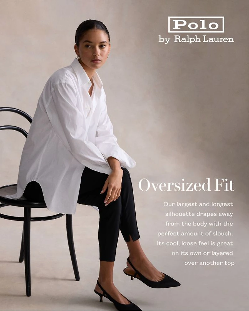 - Designed for an oversize fit with a fuller silhouette and ample room in the chest and waist. Intended to hit below the hip.
