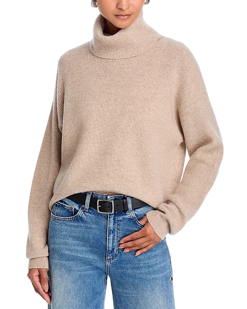 Paige Aria Cashmere Turtleneck Sweater.Color:Light Beige Heather.Size:L.Material:100% cashmere.Sweaters.