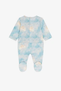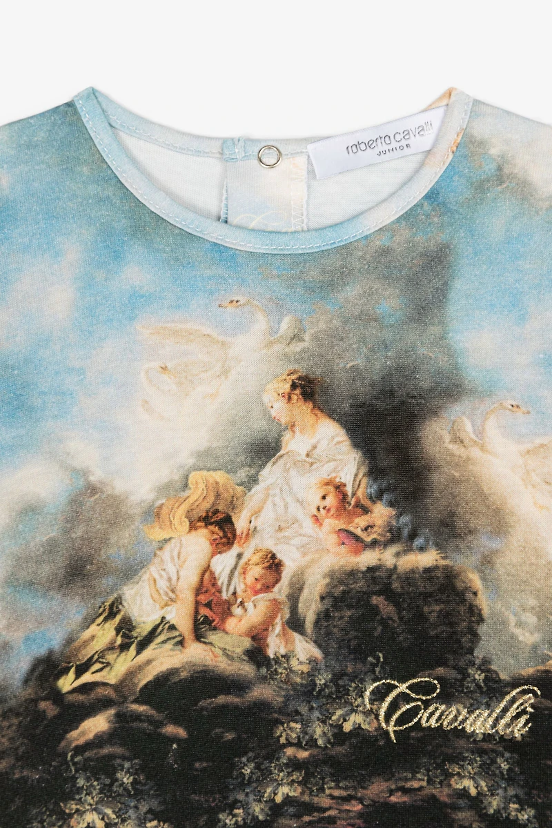 This babygrow is crafted from plush cotton jersey and patterned with a painterly print, nodding to the Renaissance. It's fitted with press studs and embroidered with a gilded logo at the side.