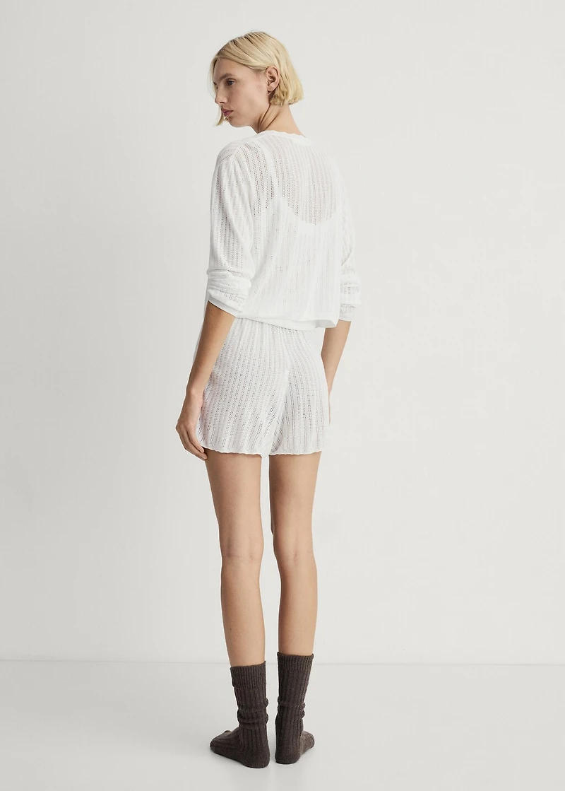 Fine knit fabric. Openwork knit. 100% viscose. Button closure. Pairs with more products from the collection. Available in various colors.