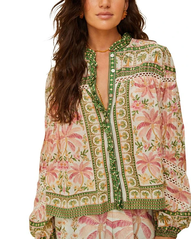 Kobi Halperin Palm Silk Blend Floral Blouse