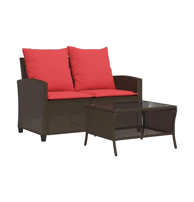 Patio Sofa 2-Seater with Cushions&Table Brown Poly Rattan