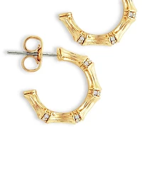 Pavé Bamboo Huggie Hoop Earrings in 18K Gold Plated