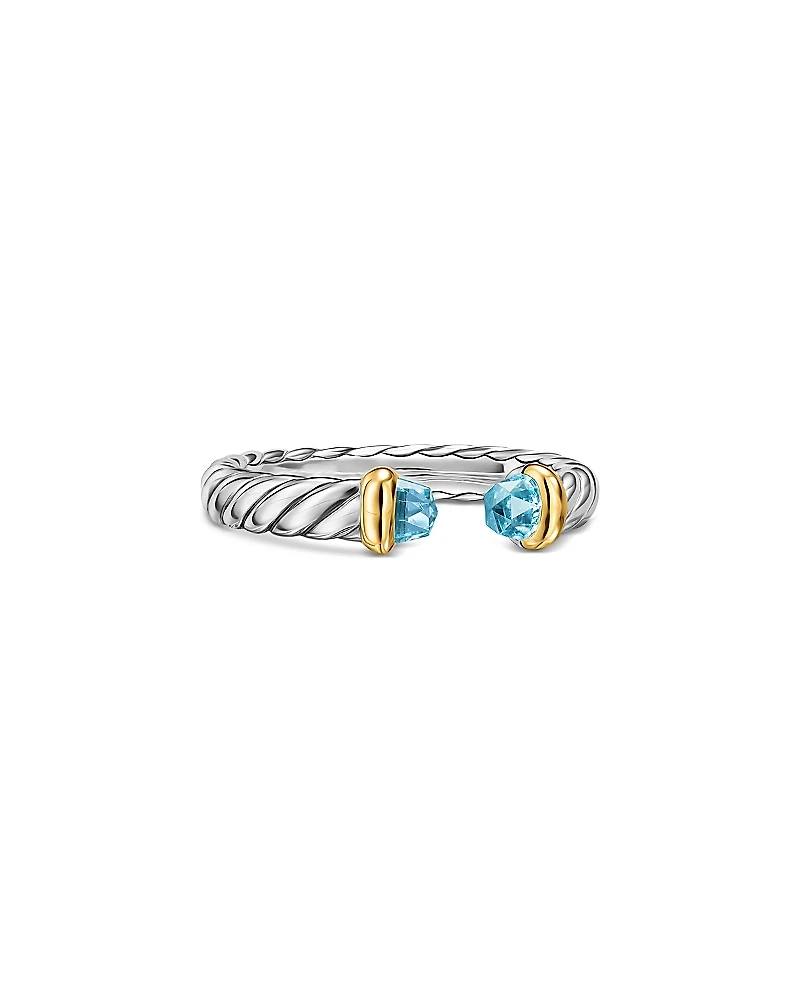Petite Cable Open Ring in Sterling Silver with 14K Yellow Gold, 3.4mm