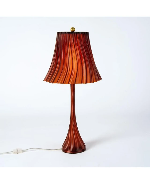 Jonathan Y Louisa 22.5" Mid-Century Modern Round Glass/Iron Pleated Shade Led Table Lamp, Smoke Gradient/Chrome
