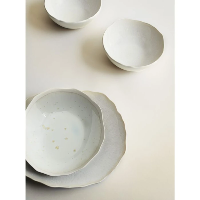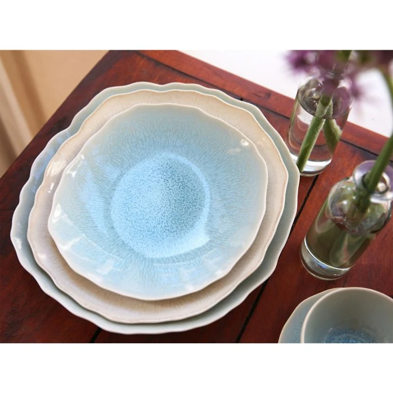 A soft and airy collection that is simultaneously classic and refined, contemporary and timeless. The irregular scalloped shapes and double-glazed layers create a unique, artisan effect.