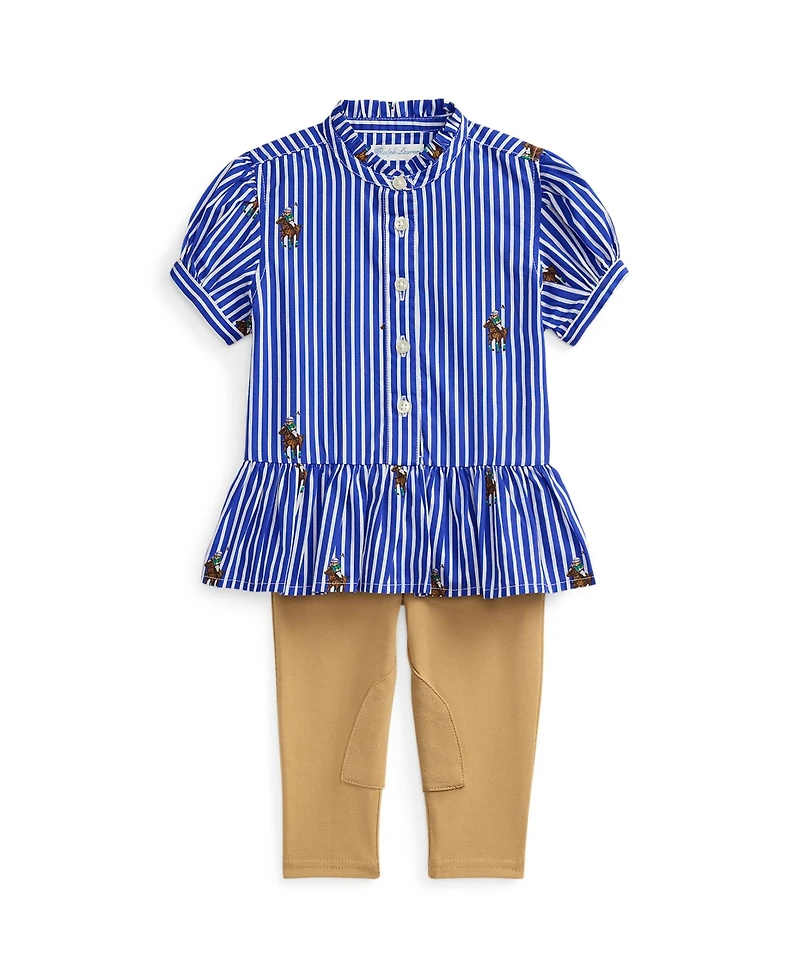 Polo Ralph Lauren Baby Girls' Striped Stand Collar Shirt and Leggings, 2-Piece Set