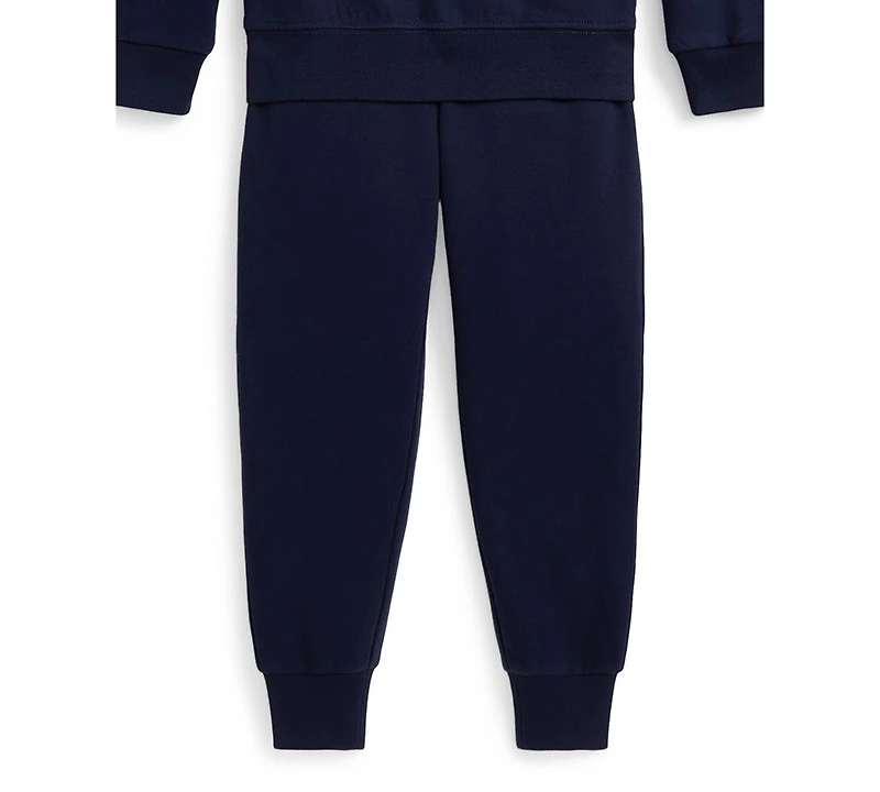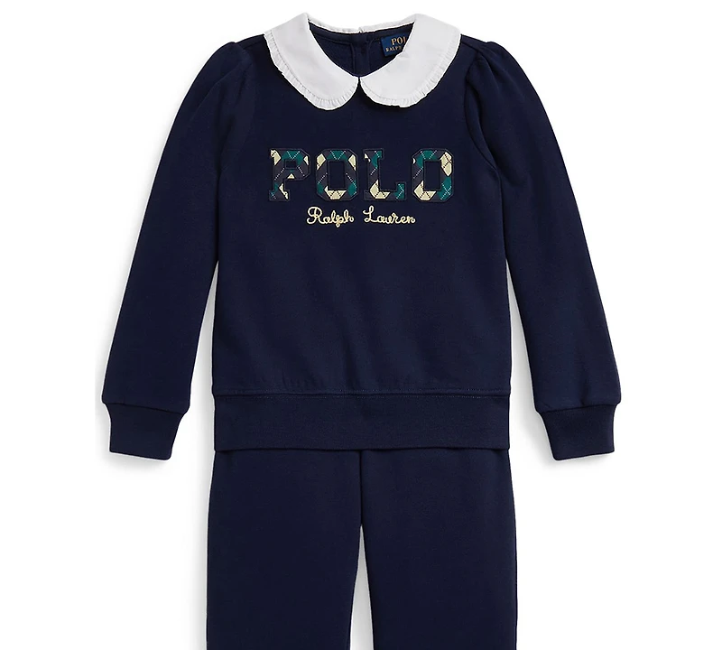 A touch of preppy polish meets everyday comfort in this two-piece ensemble by Polo Ralph Lauren. The long-sleeved sweatshirt offers cozy coverage while the argyle logo appliques lend a distinct charm. Paired with pants featuring a ribbed waistband and adjustable drawstring, it ensures a flexible fit that moves with ease throughout the day.