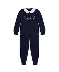 Polo Ralph Lauren Girls 2T-6X 2-Piece Argyle Logo Fleece Sweatshirt and Pants Set