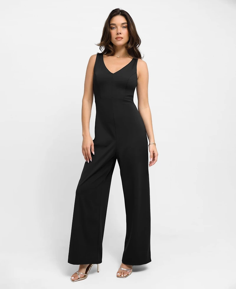 Elevate your style and silhouette with the Popilush V Neck Wide-Leg Sleeveless Shapewear Jumpsuit. This versatile piece is perfect for special occasions or nights out, offering a blend of sophistication and femininity.
