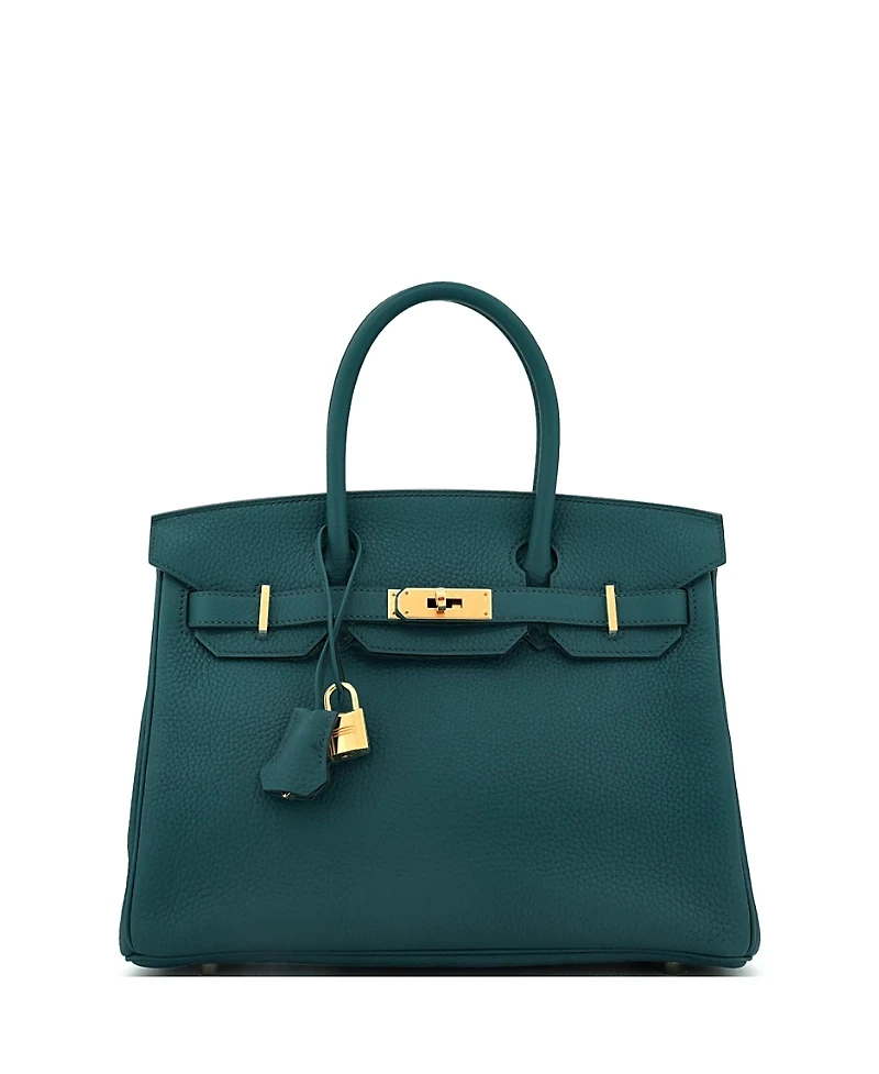 Pre-Owned HERMES Birkin 30 Handbag Green Clemence with Gold Hardware