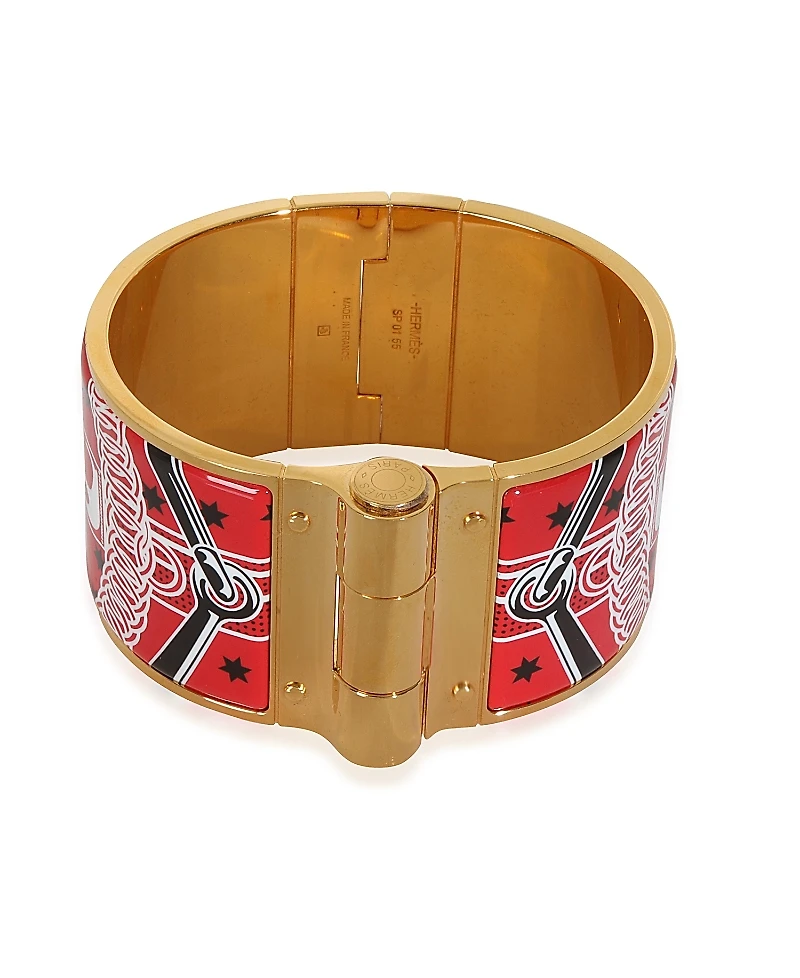 Pre-Owned Hermes Eperon d'or Bandana Enamel Hinged Gold Plated Bracelet Excellent