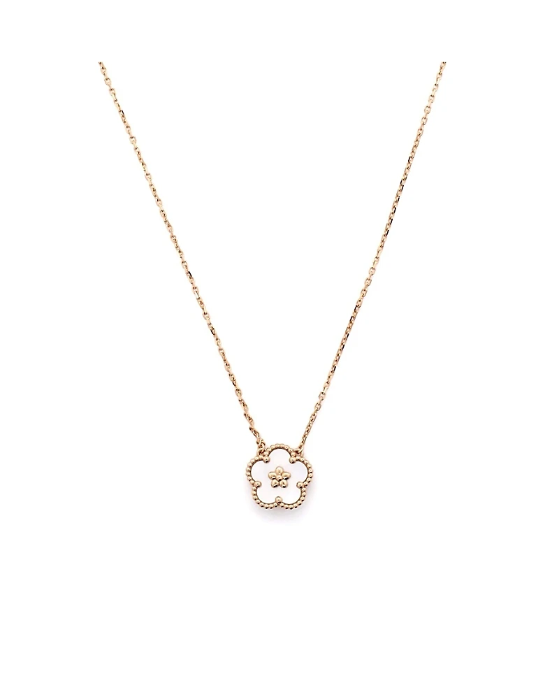 Shop Pre-Owned Van Cleef & Arpels Lucky Spring Plum Blossom Pendant Necklace 18K Rose Gold and Mother of Pearl, 14.75 - 16.5" in Los Angeles, CA