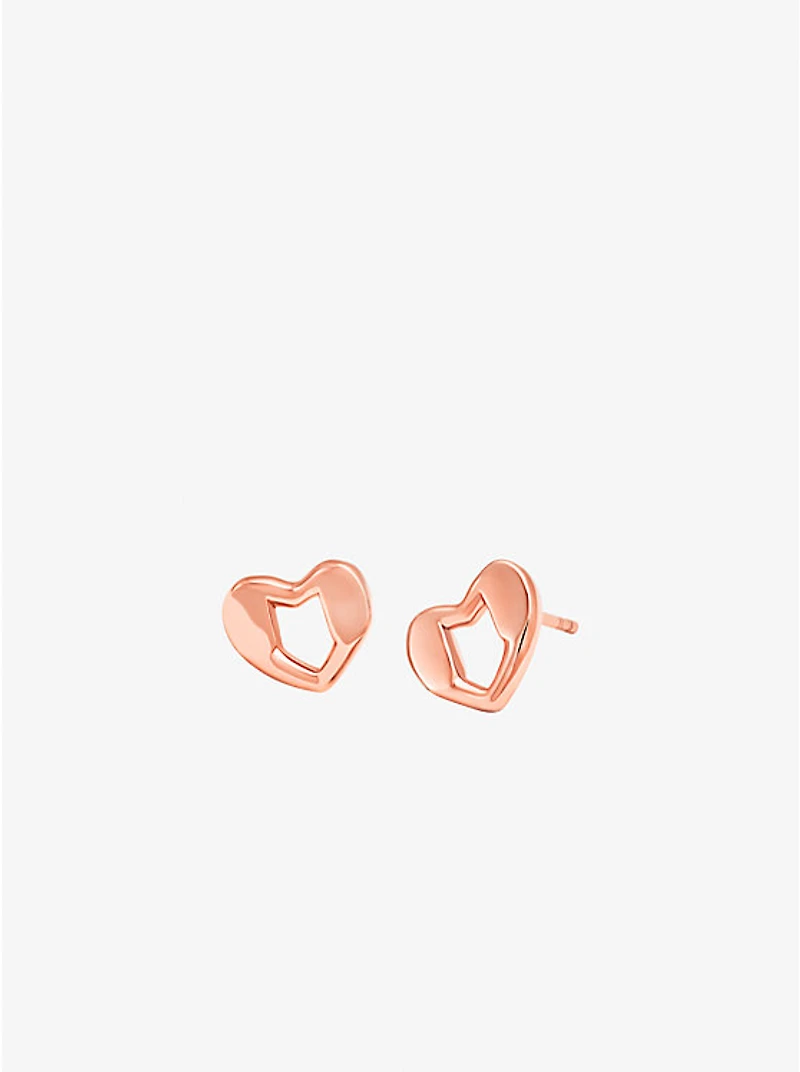 Precious Metal-Plated Sterling Silver Heart Stud Earrings