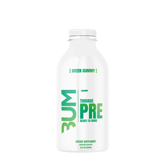 Raw Nutrition Thavage Preworkout Rtd - Green Gummy 12 Oz. (12 Bottles) Zero Sugar