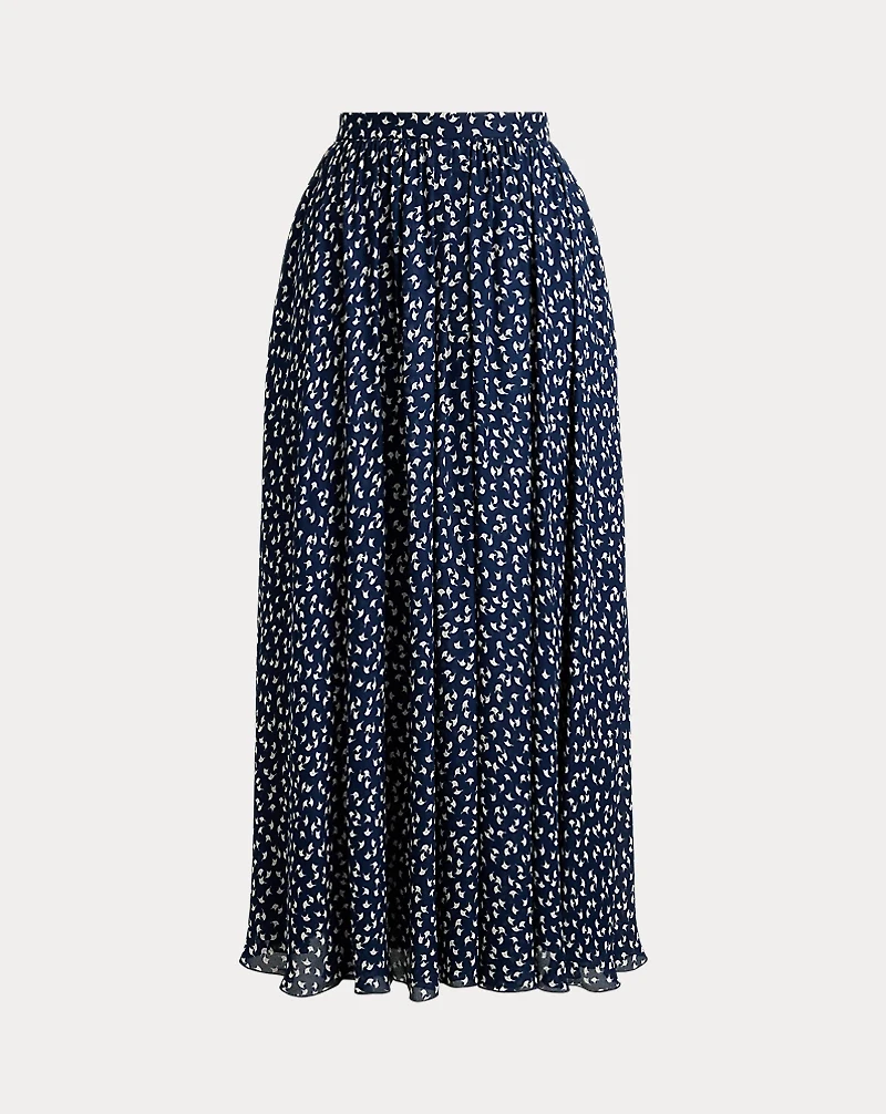 A modern rendition of the midi skirt, the Rebekah is crafted with lightweight, textured georgette. Recalling the playful, joyous feel of bright, sunny days, this skirt’s abstract geometric motif is created using a special cylinder-printing technique, resulting in a beautiful pattern that is displayed on both sides of the fabric. Delicate shirring below the waistband gives added volume to the Rebekah’s full circle silhouette.