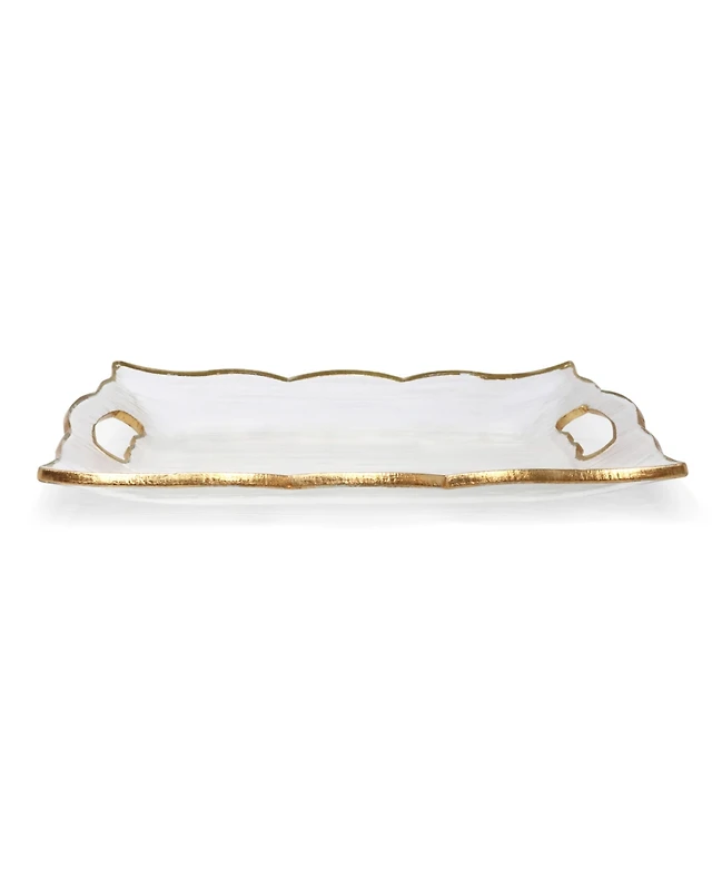 Rectangular Glass Tray with Handles and Gold-Tone Rim, 11.5"