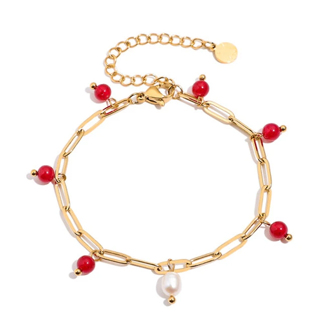 Ettika Gold Plated Paperclip Chain Bracelet with Pearl