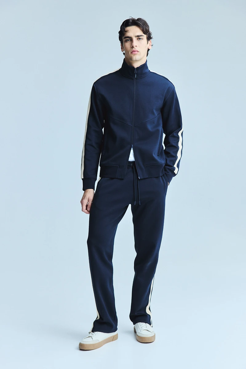 Regular-fit track jacket in functional jersey made with DryMove™ to wick away moisture from skin and keep you comfortably dry while moving. Stand-up collar, two-way zipper at front, side pockets with concealed zipper, and long sleeves with contrasting side stripes. Ribbing at cuffs and hem.