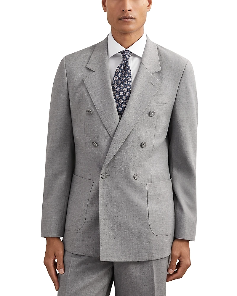 Reiss Double Breasted Notched Blazer.Color:Soft Grey.Size:38.Material:Shell: 68% polyester/30% viscose/2% elastane; lining: 55% polyester/45% viscose.Blazers & Sportcoats.