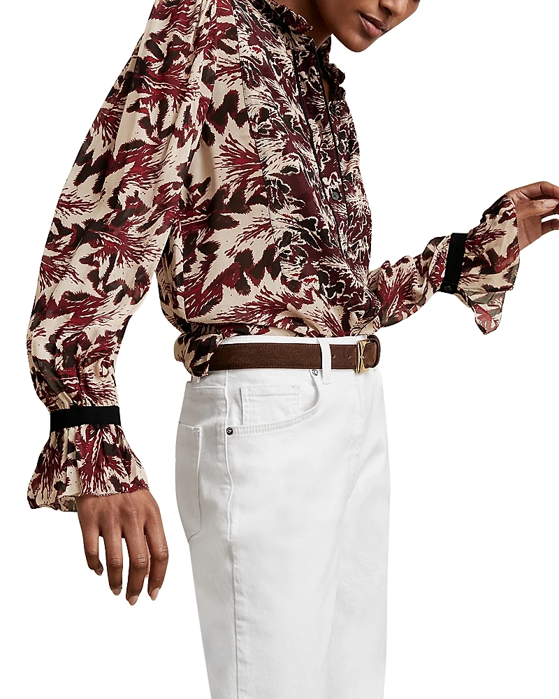 Reiss Jules Printed Top.Color:Burgundy/Cream.Size:4 UK/0 US.Material:100% viscose.Tops.