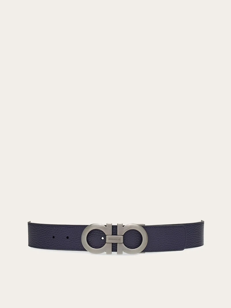 A timeless icon of elegance and luxury, this is the brand’s most unmistakable belt. Crafted from evident natural-grain calfskin, the ruthenium-finish Gancini buckle complements it with the engraved logo. This adjustable-length model offers a custom fit and style. Please check our size guide for more information.