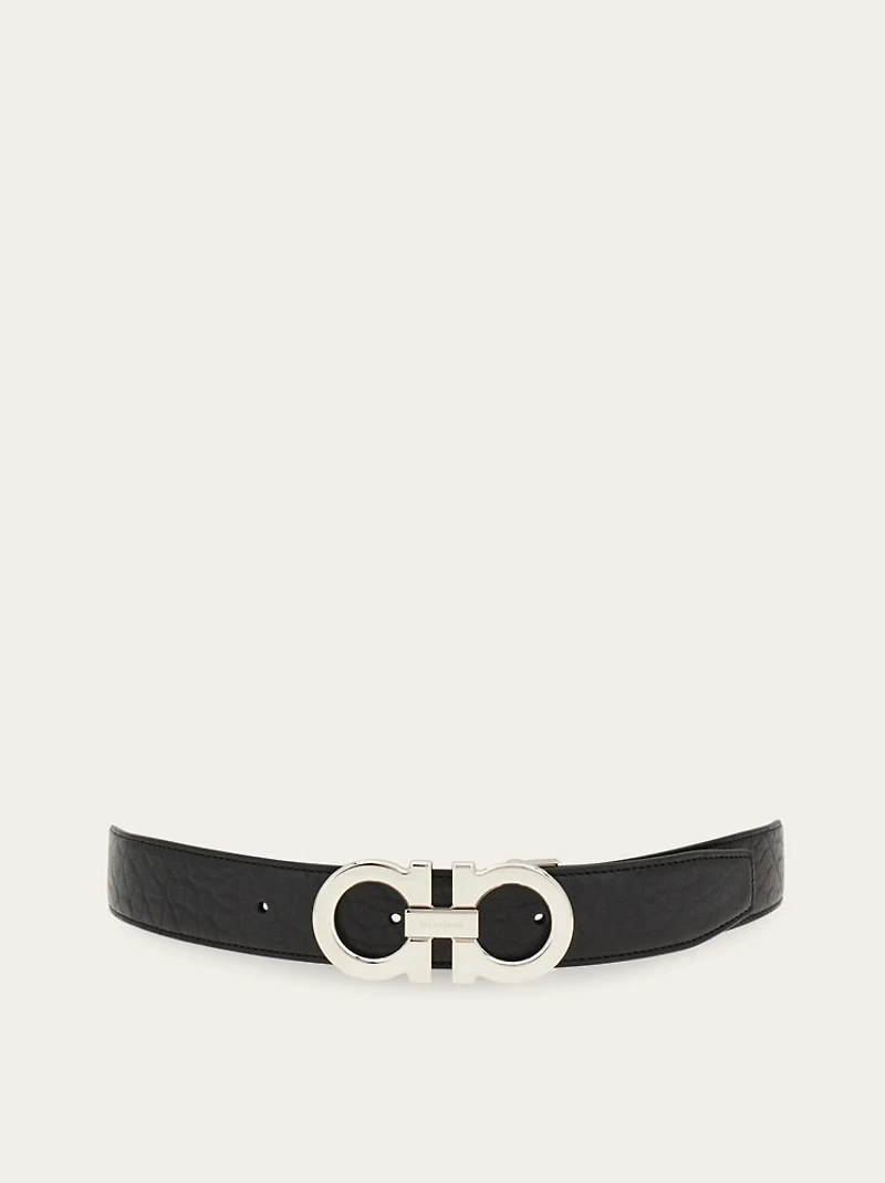 A timeless staple of the masculine wardrobe, reimagined in today’s most refined tones: this belt is crafted from treated calfskin to enhance its natural grain. The double Gancini buckle and reversible construction make it a surprisingly versatile piece. The adjustable length allows for a more personalized fit and style. We invite you to check our size guide for more information.