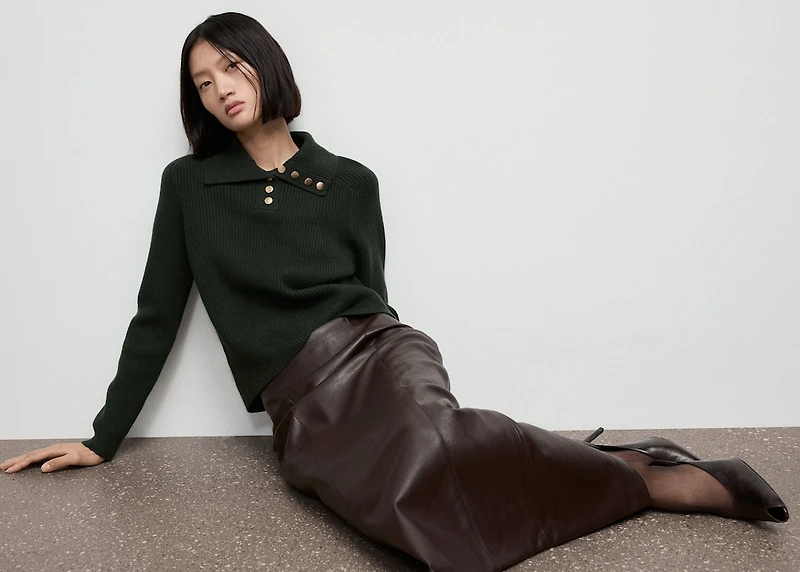 Ribbed polo-neck sweater with buttons