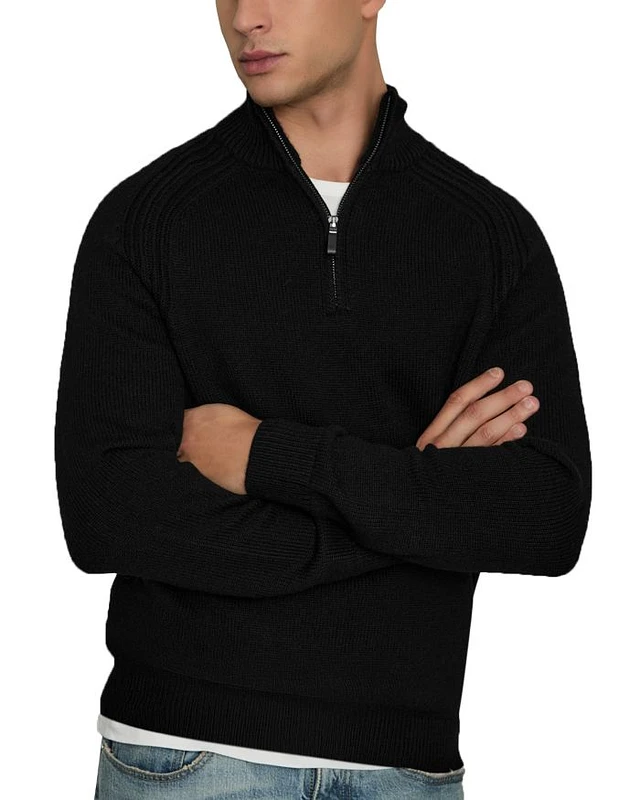 Roberts Wool & Nylon Seam Detail Regular Fit Half Zip Sweater