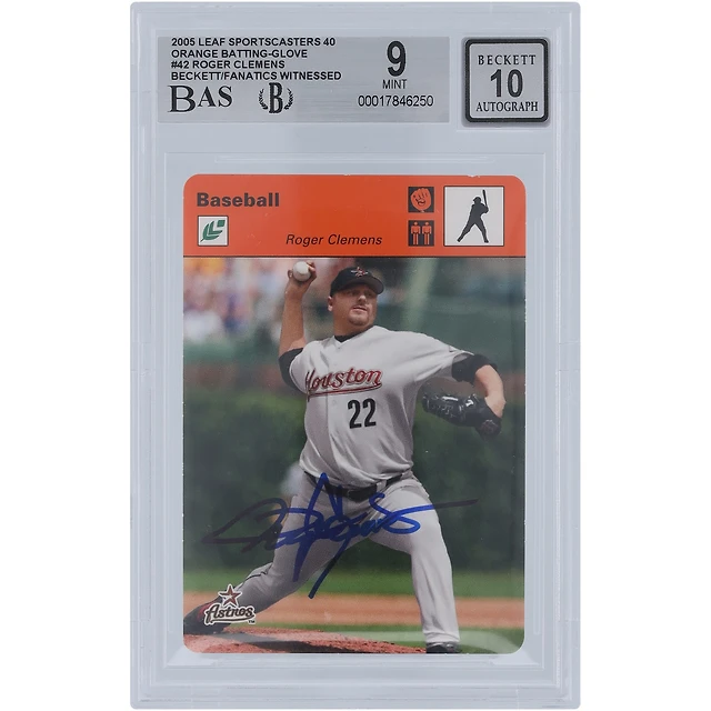 Roger Clemens Houston Astros Autographed 2005 Leaf Sportscasters Orange Batting Glove #42 #/40 Beckett Fanatics Witnessed Authenticated 9/10 Card