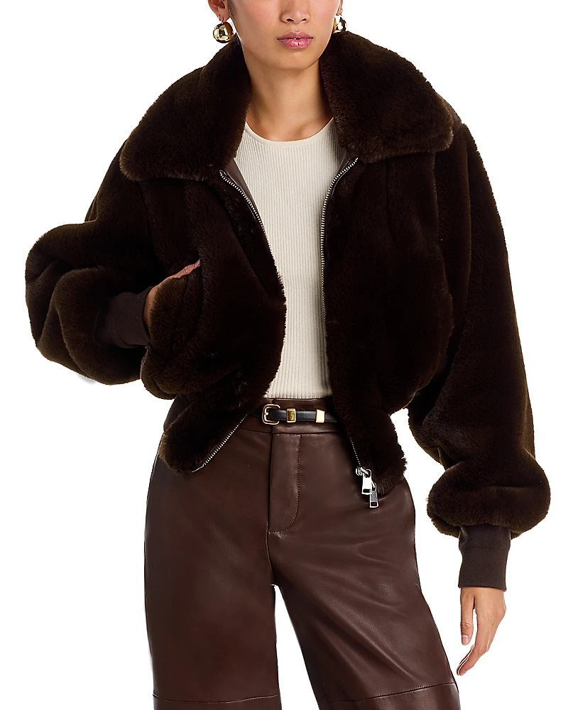 Ronny Kobo Clemence Faux Fur Jacket.Color:Brown.Size:XL.Material:Faux fur: 100% polyester; lining: 55% viscose/45% polyester.Jackets.