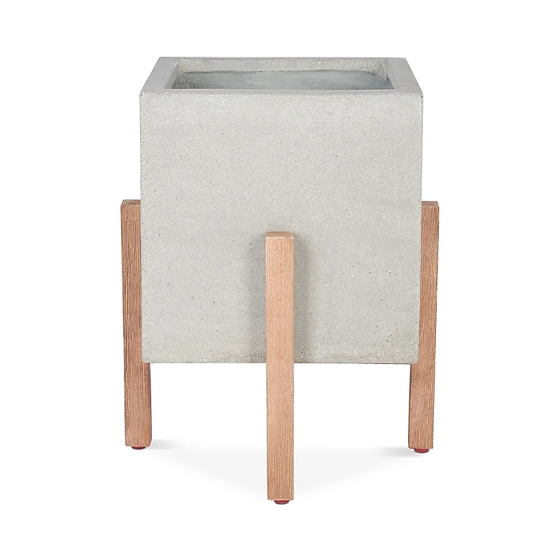 Safavieh Borsla Planter.Color:Light Gray.Material:Ficonstone pot; acacia wood legs.