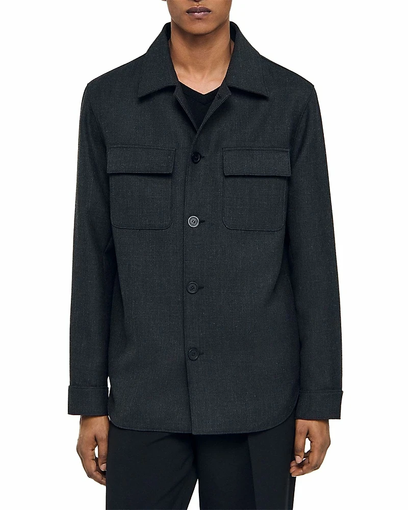 Sandro Heathered Overshirt.Color:Dark Grey.Size:L.Material:Body: 56% polyester/44% Virgin wool; body lining: 100% viscose; pocket lining: 100% cotton.Jackets.