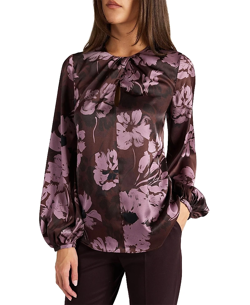 Santorelli Elena Long Sleeve Twist Neck Blouse