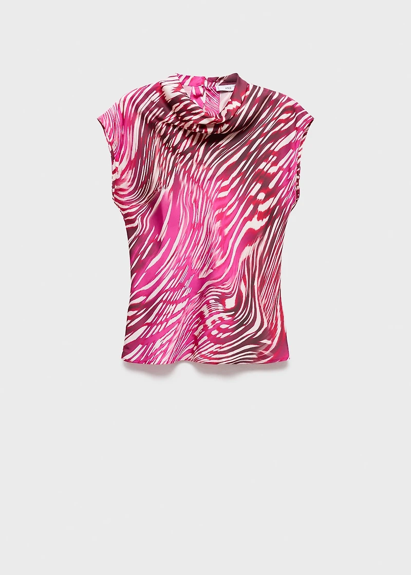 Crafted from satin fabric, this garment features a straight design and print. It has a draped neckline and short sleeves, complemented by a button fastening at the neck. This piece is part of our event collection, designed to make you the perfect guest at any party, wedding or ceremony