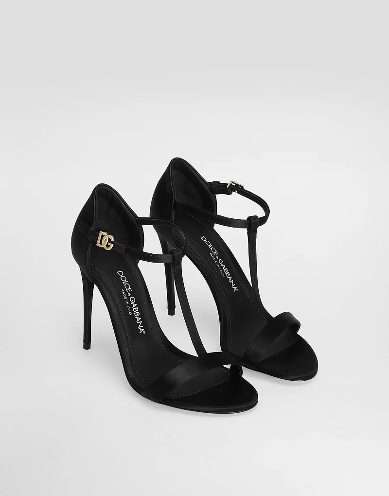These Keira T-bar sandals come entirely in satin and feature the DG logo detail on the strap.