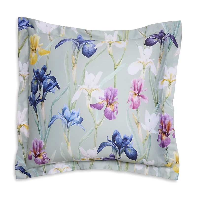 A symbol of freedom and joie de vivre, Charlotte offers warmth, elegance, and beauty with its hand-drawn iris motif set atop a pale green background.