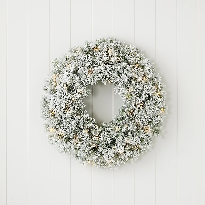 Shop Seasonal Llc Flocked Winter Fir 24 Wreath with Clear Lights in Los Angeles, CA