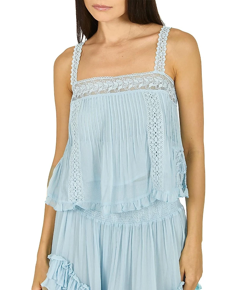 Secret Mission Calantha Top.Color:Cloud Blue.Size:XS.Material:Garment: 100% Silk; Lining: 100% Viscose; Lace: 100% Polyester.Tops.
