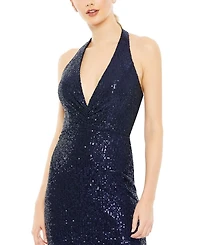 Sequin Halter Strap Plunge Neck Gown