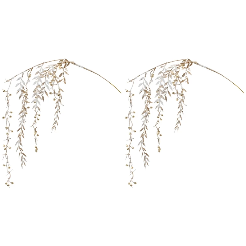 Add a touch of nature to your home with this stunning set of Hanging Berry Sprays. The wintry white and gold tones paired with the chic metallic finish and unique hanging design are the perfect combination to create a memorable holiday display. The quality plastic composition is sure to last for seasons to come. Display the set in a tabletop vase to add height to your decor, or place them into a garland or wreath to accent the arrangement. Whether you're adding a touch of cheer to your home or gifting to a loved one, these pieces will definitely bring smiles to your home.