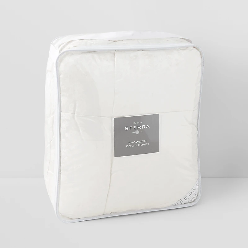 This heavy down Sferra duvet is designed to cocoon you in sweet dreams. The Sferra Down Collection boasts an amazing variety of down duvets and sleeping pillows. Carefully constructed of down clusters, which interlock and trap air to keep you warm, but also have the remarkable ability to keep you comfortable, Sferra down offers varying levels of fill power to customize the perfect sleeping experience. A measure of efficiency, the higher the fill power number, the better the down and the greater its insulating value. With a weight and a loft for everyone, one will be just right for you.