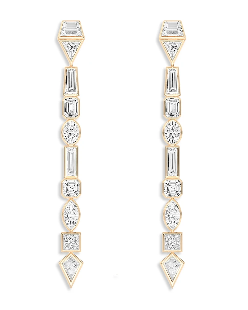Shahla Karimi from the Luxe Collection Certified Lab Grown Diamond Mixed Cut Azadi Shoulder Duster Drop Earrings in 14K Yellow Gold, 10.05 tcw