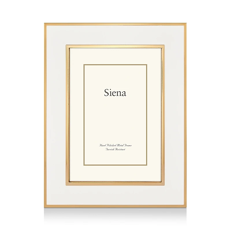 Siena White Enamel with Gold Frame, 5" x 7".Color:White.Material:Metal/enamel.