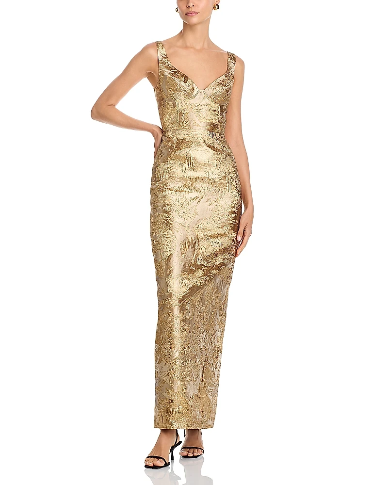 Simkhai Viella Gown.Color:Gold.Size:14.Material:shell: 100% polyester /lining: 51% polyester /49% elastine.Dresses.