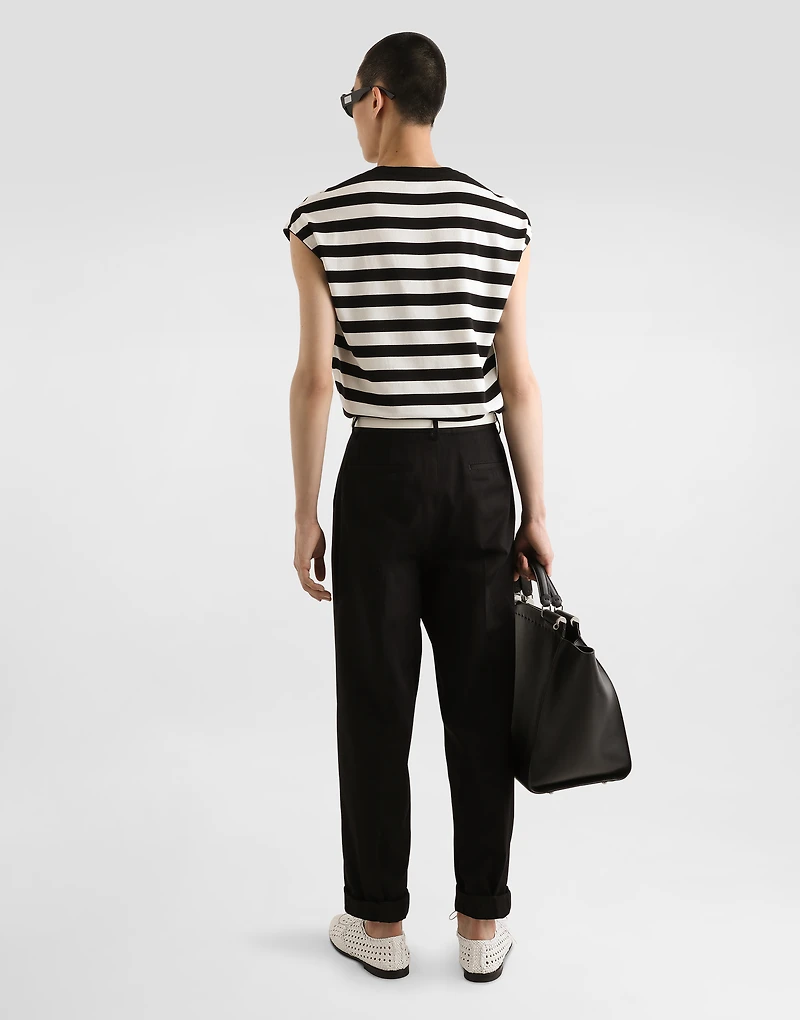 Italy and its beauty are reflected in the Men’s SS25 Collection. Woven raffia and leather give life to jackets, polo-shirts and sweaters to celebrating Italian craftsmanship. The color palette ranges from Nero Sicilia black to burgundy, contributing to conveying a sense of eternal elegance. Refined accessories complement the look: belts and loafers with hand-finished details and oversize bags, such as the Sicily, the Marlene with crocodile-effect print and the versatile Adamo tote.